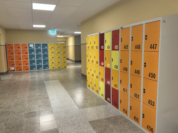 Am 22.10. war es endlich soweit: Die neuen Schließfächer wurden geliefert, vom Förderverein nummeriert und so kann endlich jeder Wunsch nach einem Spint auch erfüllt werden. Die bunten Schränke machen den Kellergang auch gleich ein bisschen freundlicher 🙂